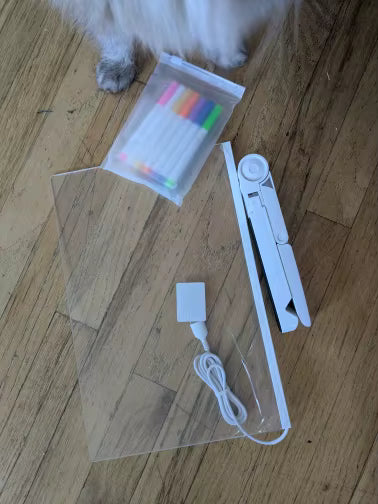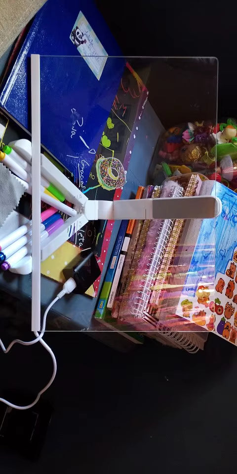 Grâce à son éclairage LED doux, ses feutres fluorescents et sa surface effaçable, il peut dessiner, écrire et recommencer à l’infini — sans lumière bleue, sans désordre et sans frustration.